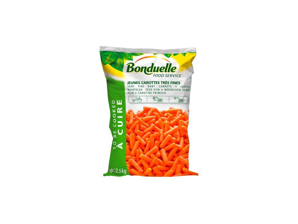 Mladá mrkev celá extra jemná (Ø 6 -14 mm), zelenina hluboce zmrazená.