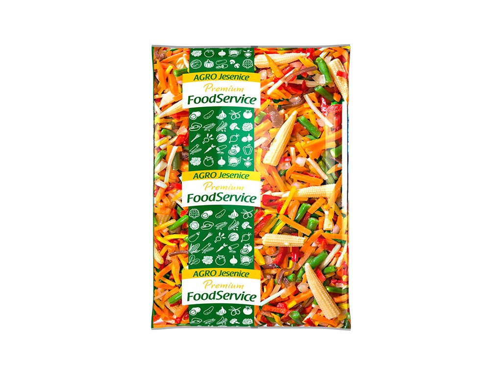 Složení:mrkev, paprika červená, cibule, fazolové lusky, kukuřice mini klasy, mrkev žlutá, cuketa, houba Ucho Jidášovo (Hirneola auricula judae), bambusové výhonky